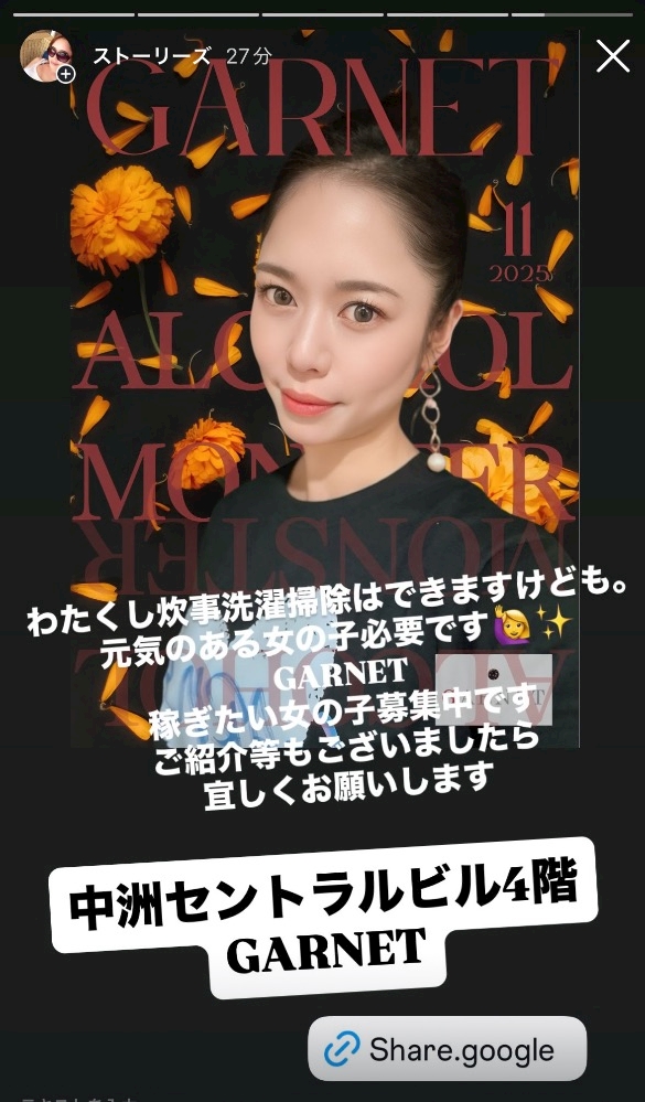 お腹すいた!夜は中華🇨🇳やけん我慢かなぁ🥲 - GARNET💎うーたん🐒✨ - GARNET・ガーネット - 中洲のスナック