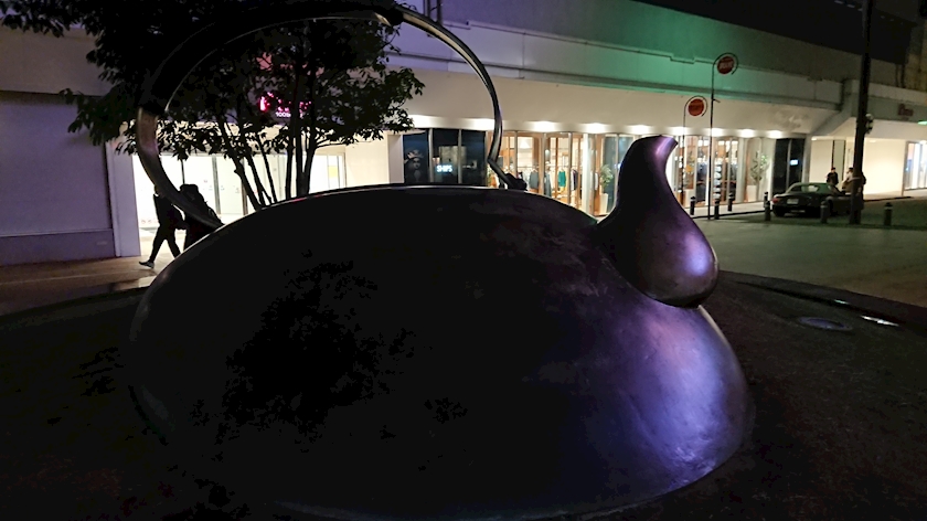 モニュメント(やかん)があり