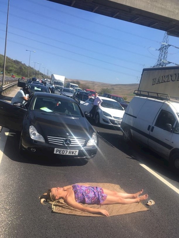 その女性は、長い渋滞にしびれを切らし