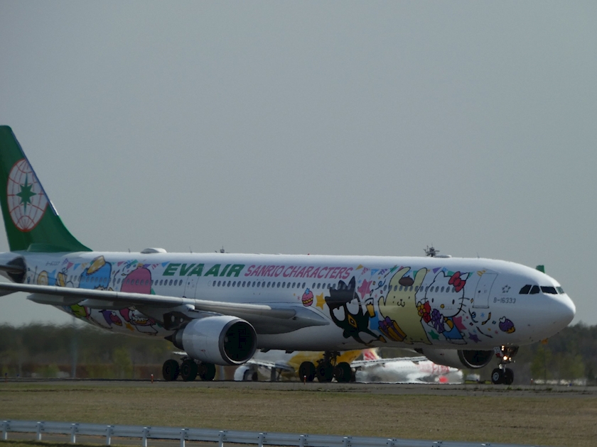 サンリオのラッピング飛行機も