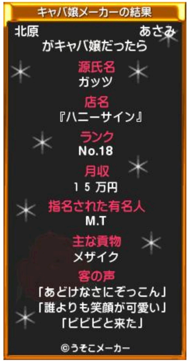 源氏名「ガッツ」(笑)