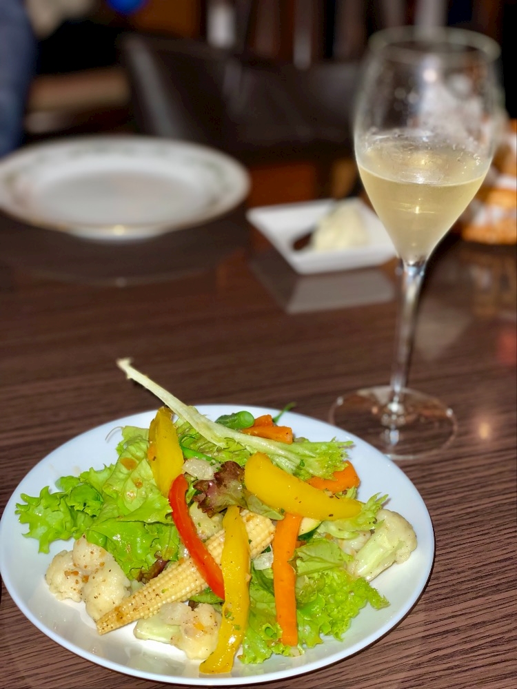 温野菜サラダとグラスシャンパンから🥗🥂