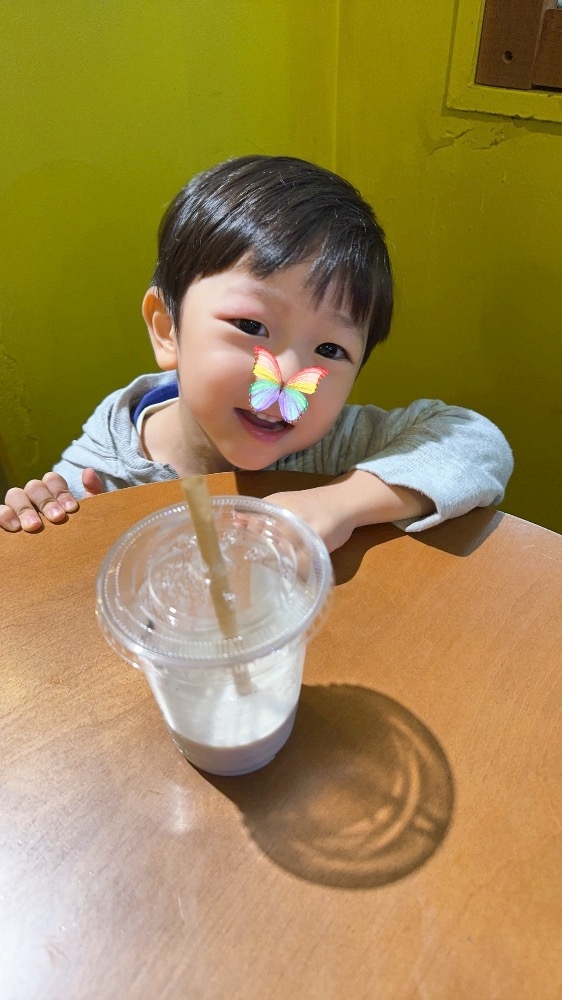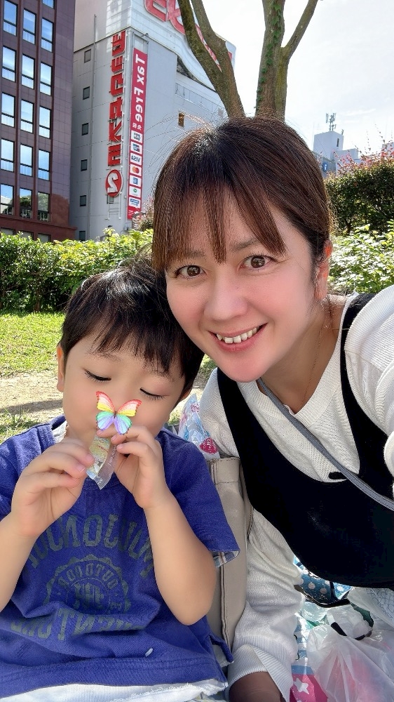 嬉しそうな顔をする息子くんを見て