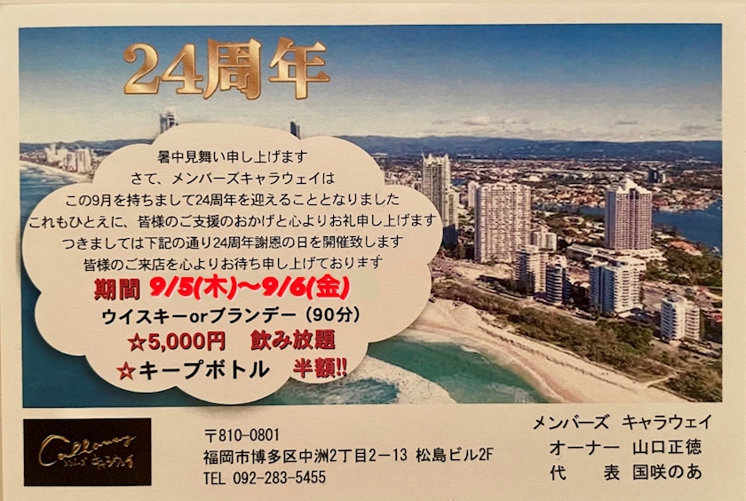 キャラウェイ24周年を迎えました🙌🏻💖 - エマ - メンバーズ キャラウェイ - 中洲のスナック