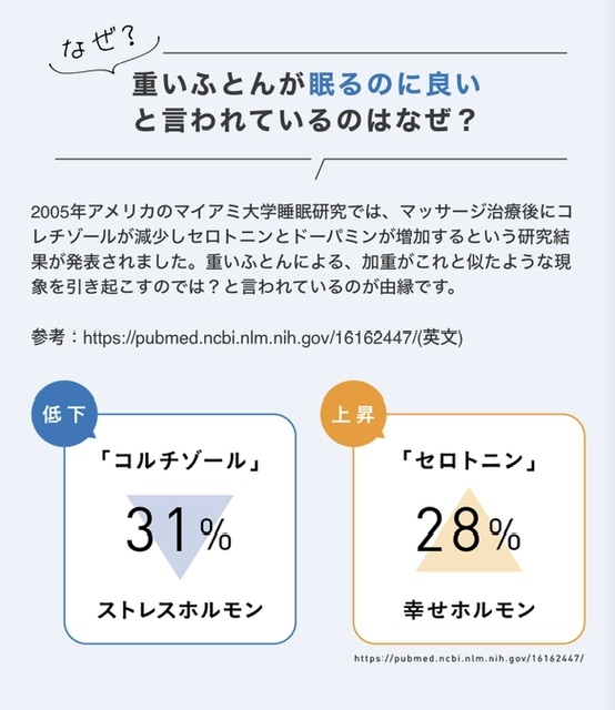 重たい布団で寝るとマッサージ治療後のようなスッキリ感が得られるみたいです!