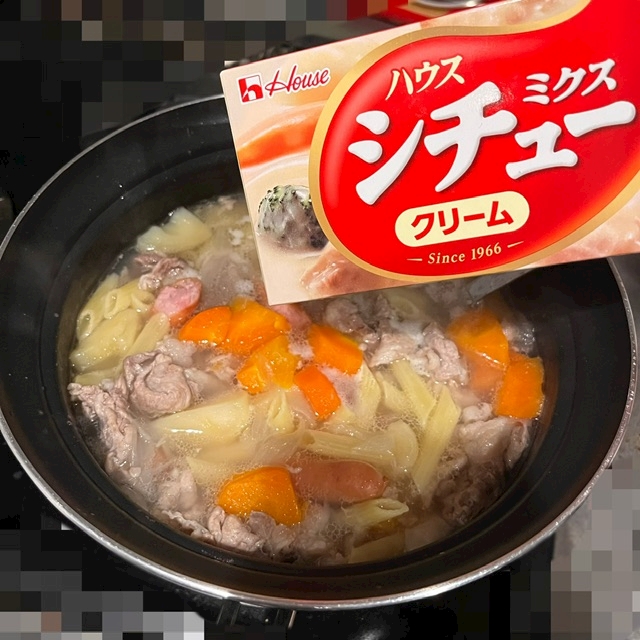 今回は入れてないけどエビ、ホタテなど具たくさんにするのが我が家流のシチューです🏠