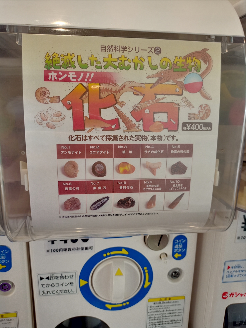 本物の化石のガチャガチャもあって