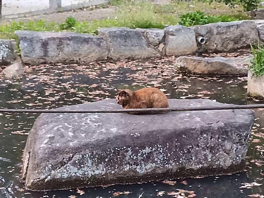 池の真ん中で佇むにゃんこ🐈⬛