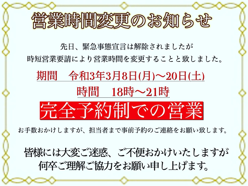 時短営業再開と