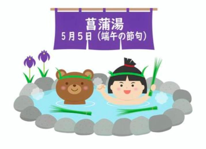 菖蒲(しょうぶ)を頭に巻いて