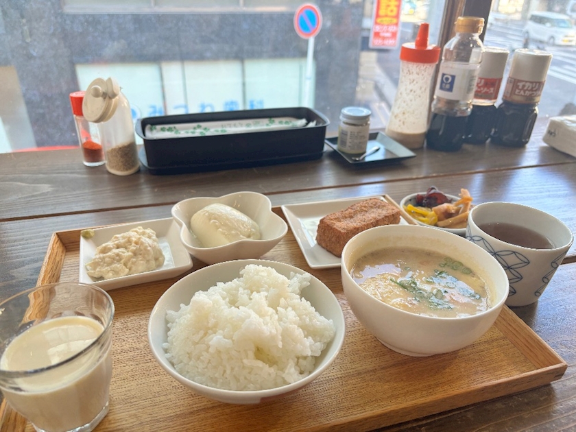 お豆腐の朝食載せとく🙂👍)