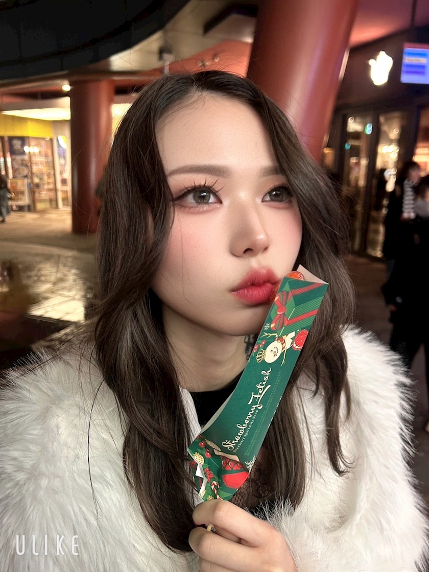 これは真冬の寒い中いちご飴食べた記念写真✌️