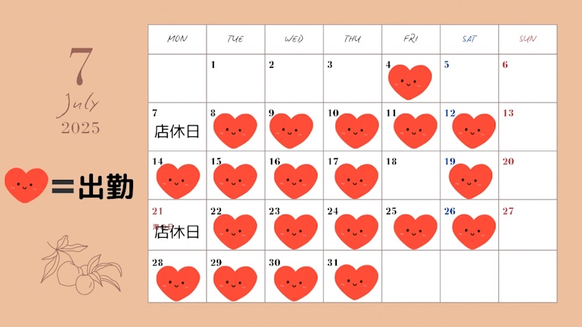 7月の出勤日です!!