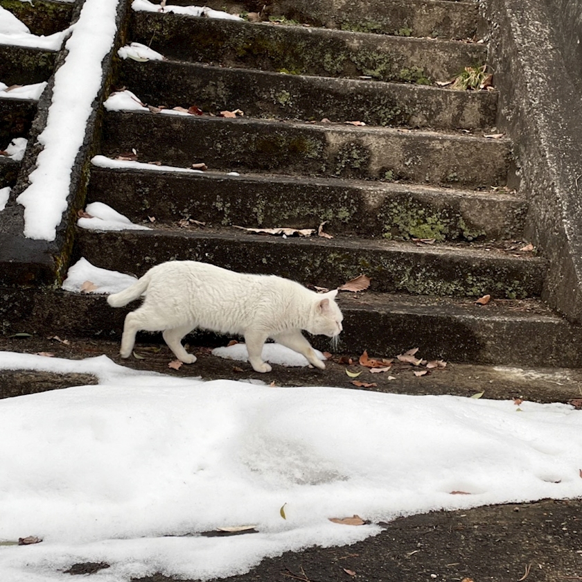 白猫ちゃんと雪の写真!