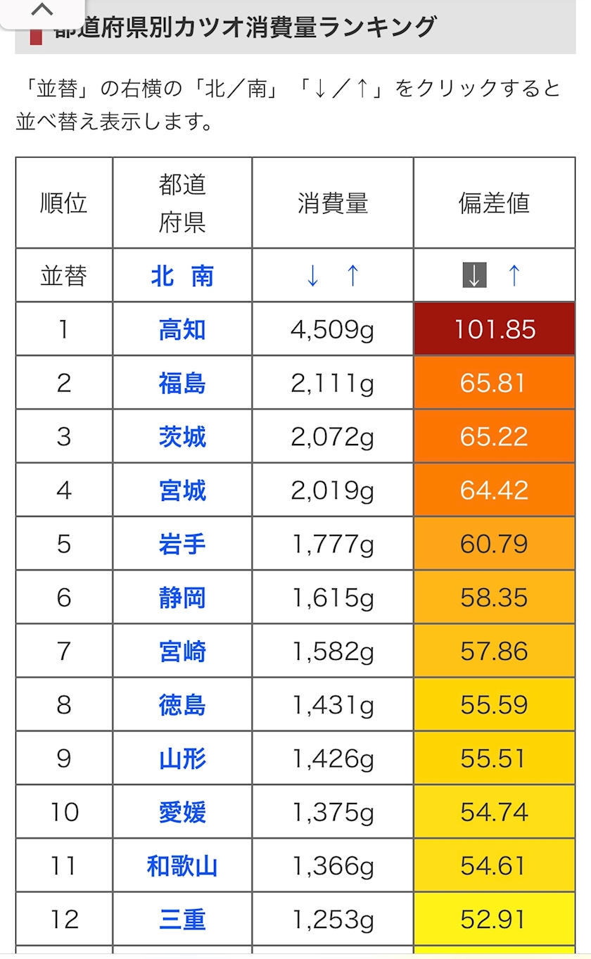 布団の中で全国のカツオ消費量調べたんだよね🐟