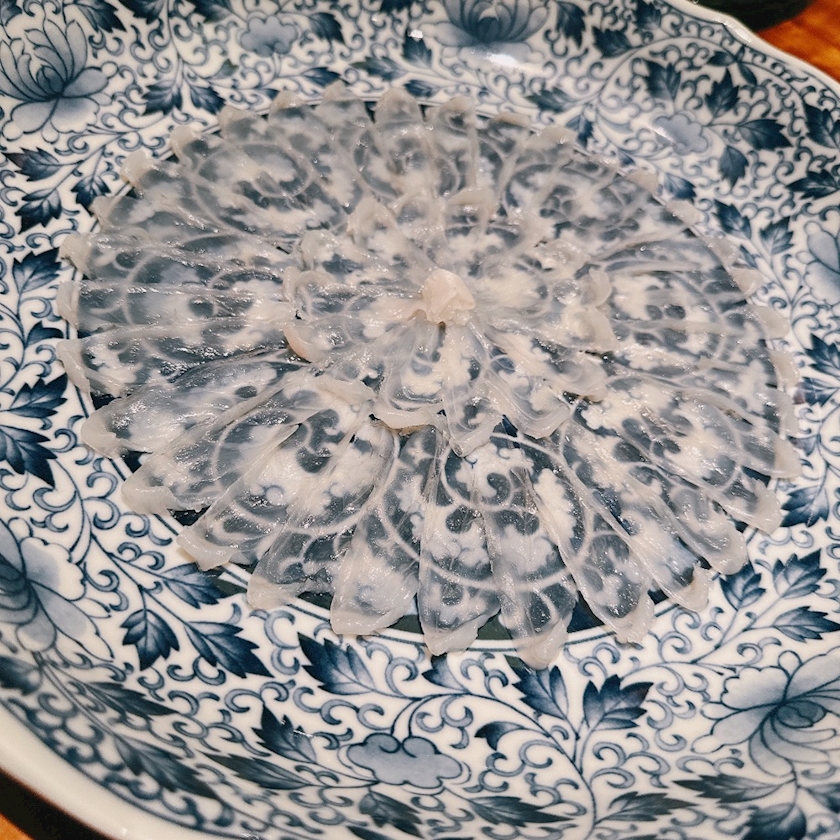 ふぐ刺し食べたの初めてなんだけど