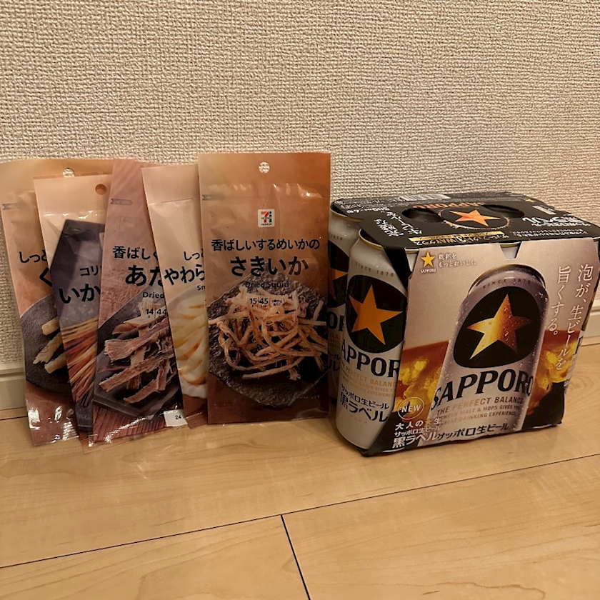 黒ラベル6本とイカ達🫶