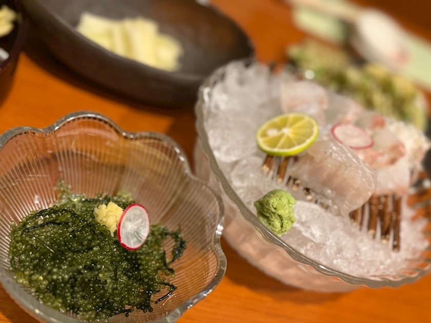 海ぶとう、ヒラメのお刺身〜♡
