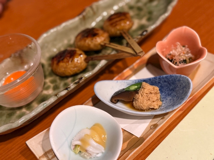 お通しからの月見つくね〜♡