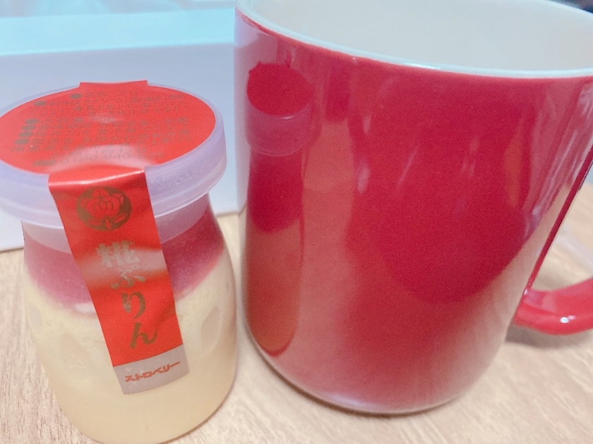 ストロベリーラテとストロベリーソースのプリン。