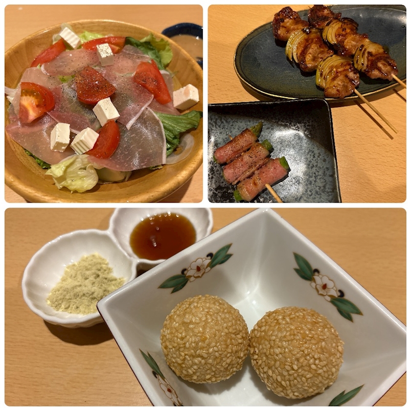 初のごま団子には黒蜜ときなこが付いてきたよ✨