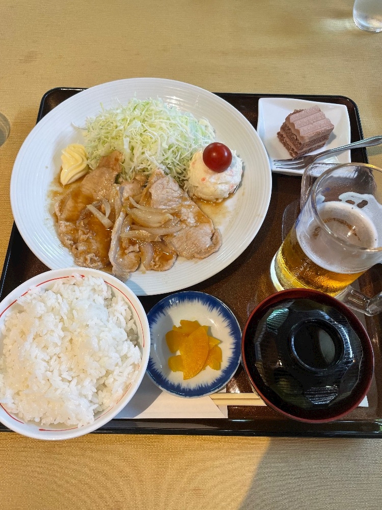 お昼は 珍しく 生姜焼き🍽