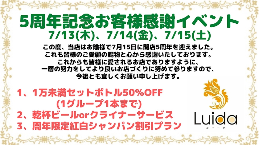 ㊗️5周年🎉 - しのぶ - Luida・ルイーダ - 郡山・朝日のスナック