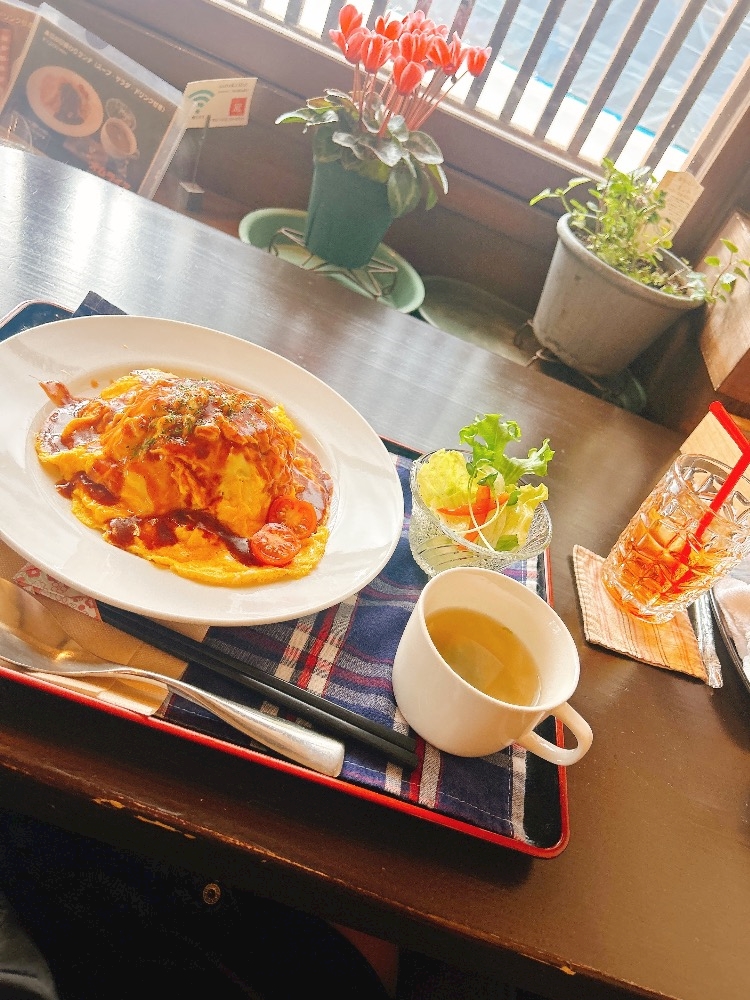 ソースはケチャップかデミグラスが選べるよ(૭ ᐕ)૭