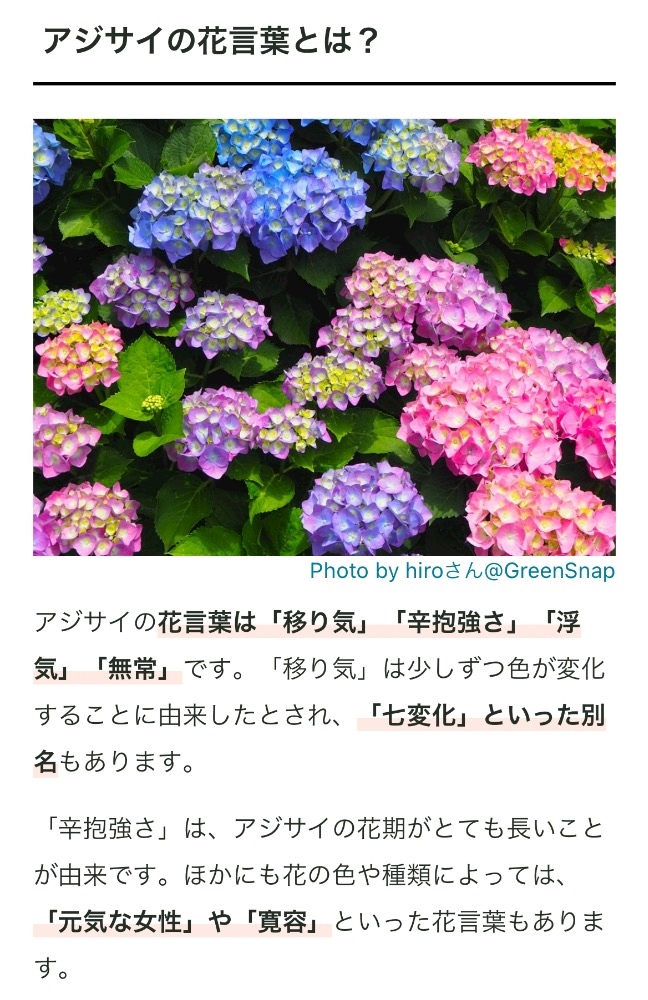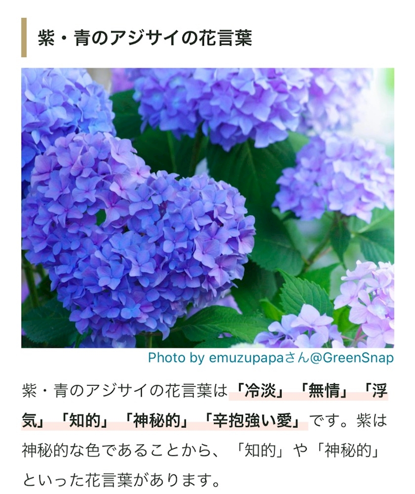 紫陽花の花言葉をしらべたので