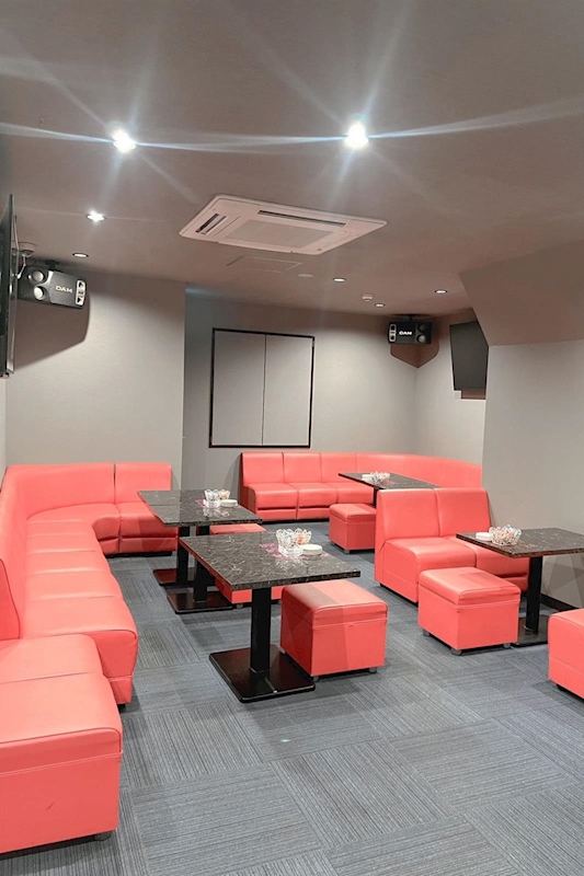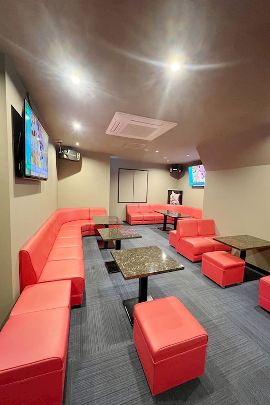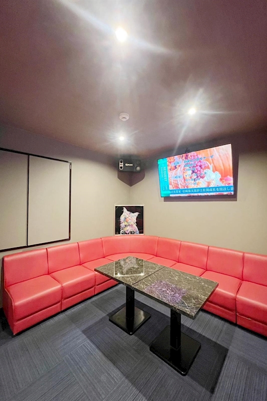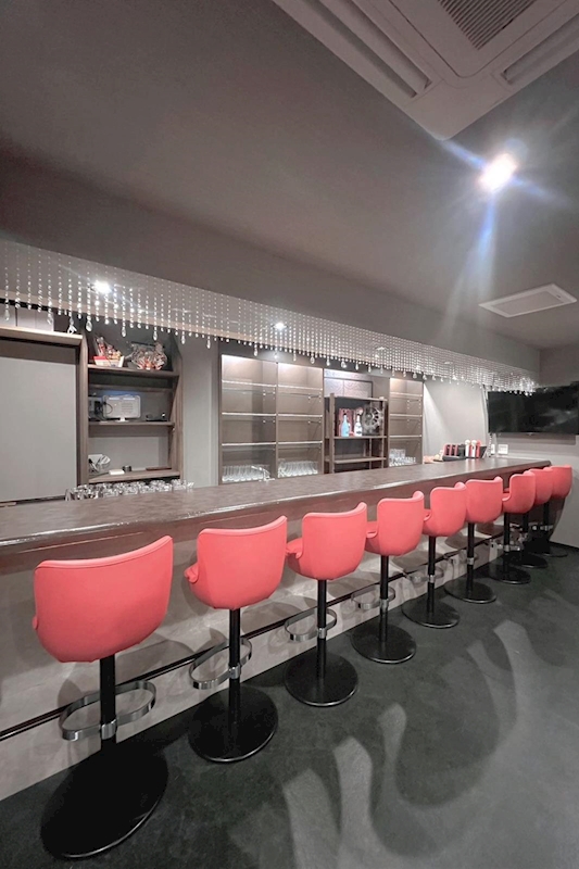 店内は、鮮やかなレッドのソファとシックなインテリアが映える広々とした空間。カウンター9席に加え、テーブル6卓をご用意しており、お一人様はもちろん、グループでのご利用や貸切にも対応可能です。