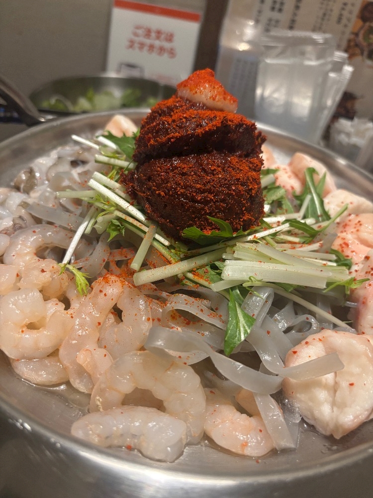 ホルモンに海鮮に沢山入ってて美味しい🦐