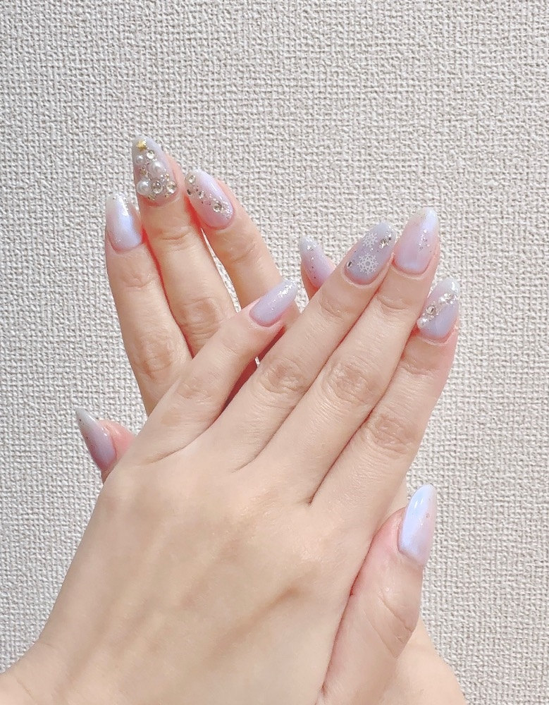白と水色のネイル初めてやったけど