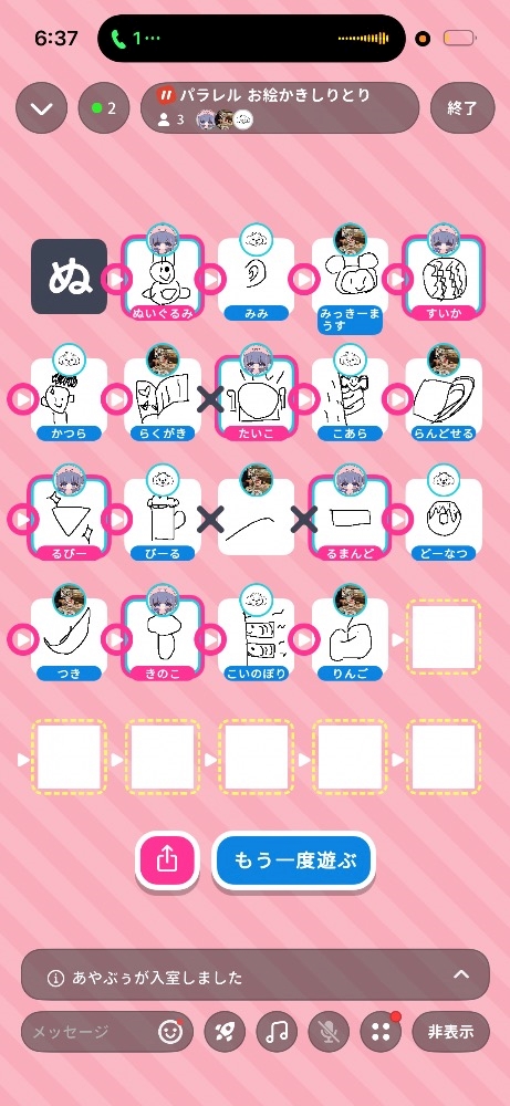 朝まで電話繋げて絵しりとり。(笑)
