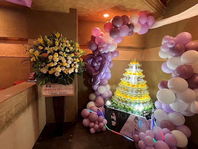 いつもの落ち着いたダーム様の雰囲気から一変、イベントを彩る、華やかなバルーン装飾やお花…お客様方からのお花はもちろんですが、キャストの女性達からのお花がいっぱいでびっくり🤭