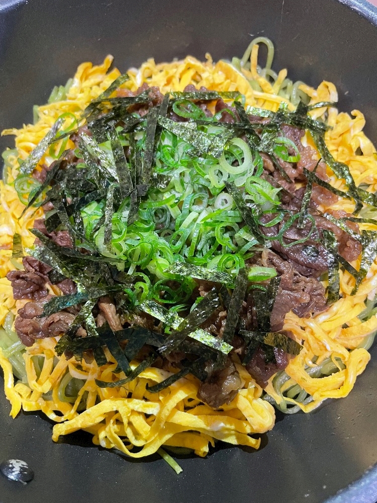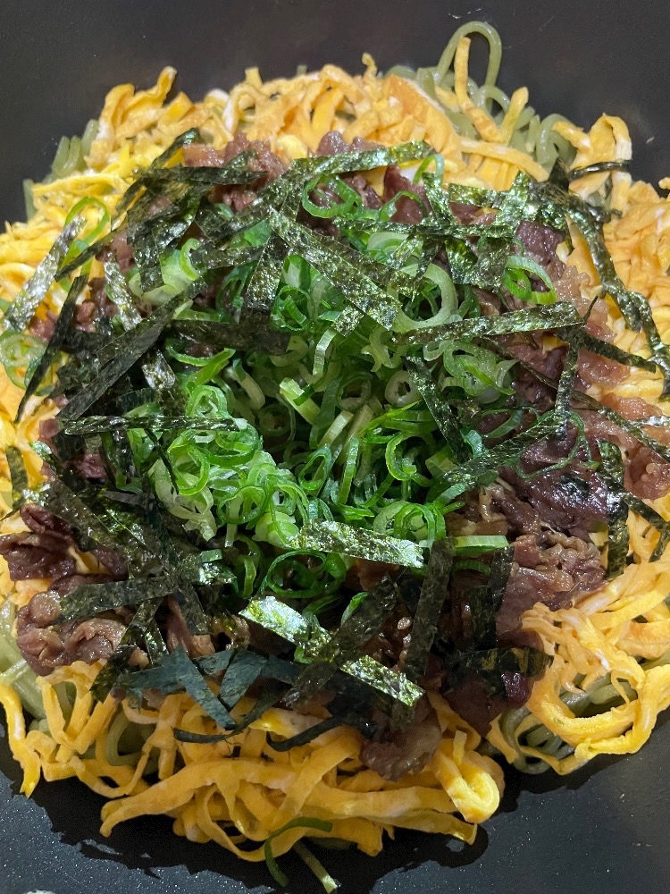 卵2個分錦糸卵したら、麺が埋まっちゃった(꒪ꇴ꒪ ; )