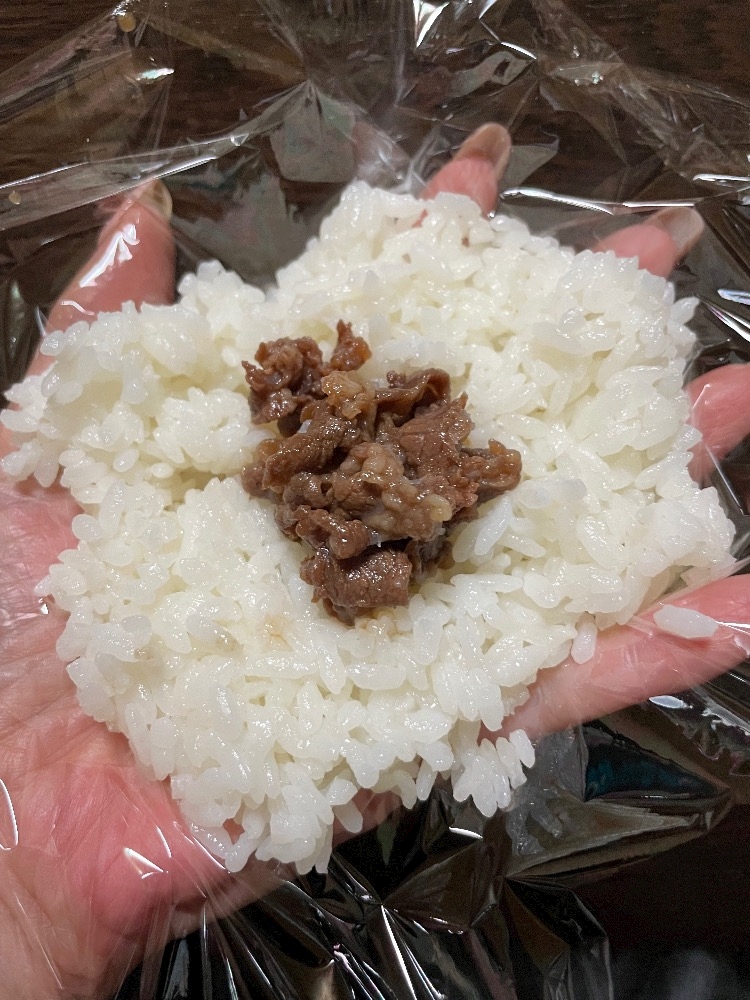 今日のおにぎりには愛と🐮が!
