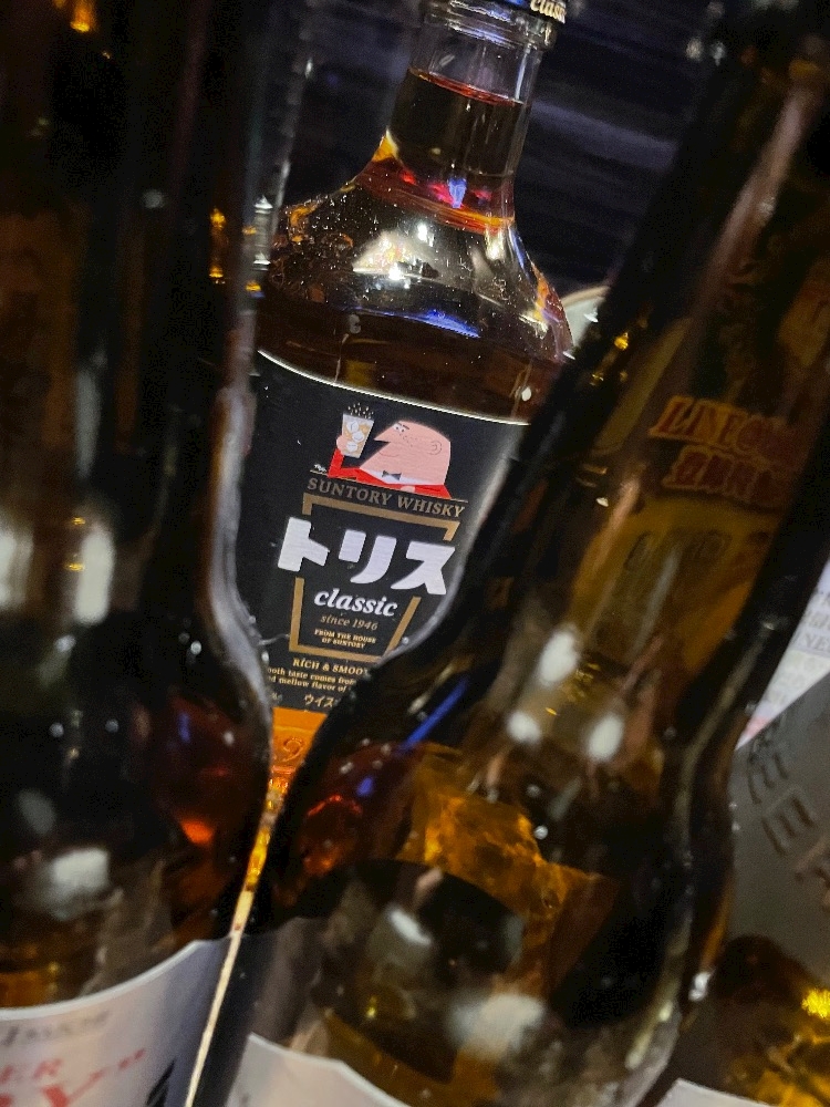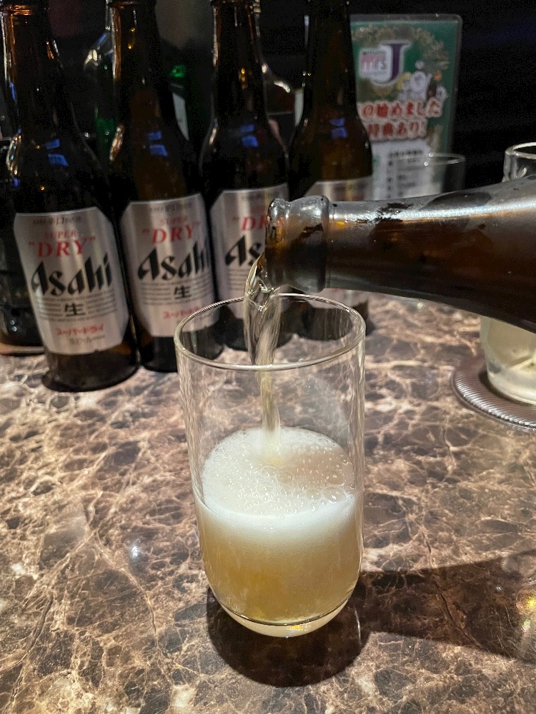 ズラッと並んだ瓶ビールを背に✨壮観だなぁ