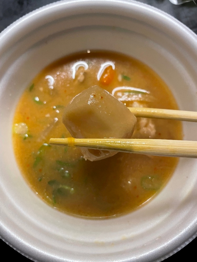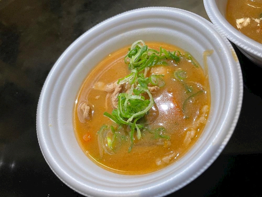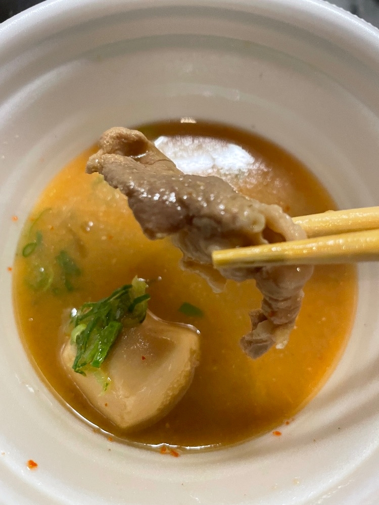 (箸が止まらなくて更にグビグビ減っている豚汁)