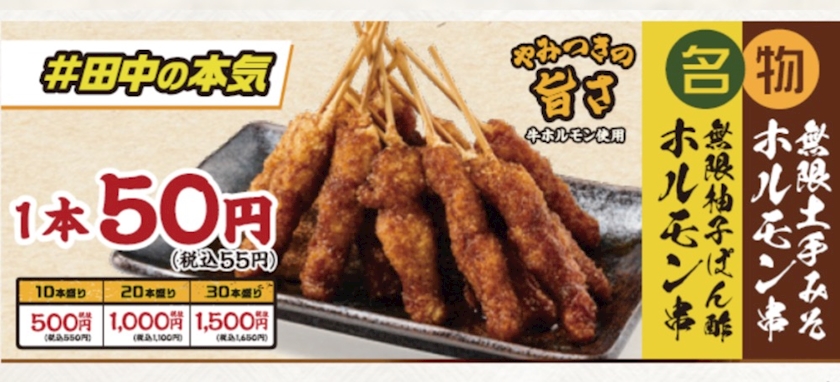 串カツ田中のメニューのひとつ