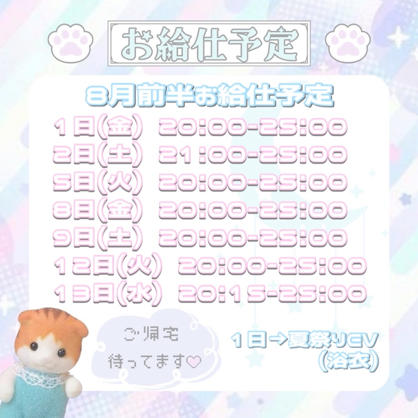 7月ラストお給仕締めに来てくれてありがとうᐡ⸝⸝> ̫ <⸝⸝ᐡ🐾
