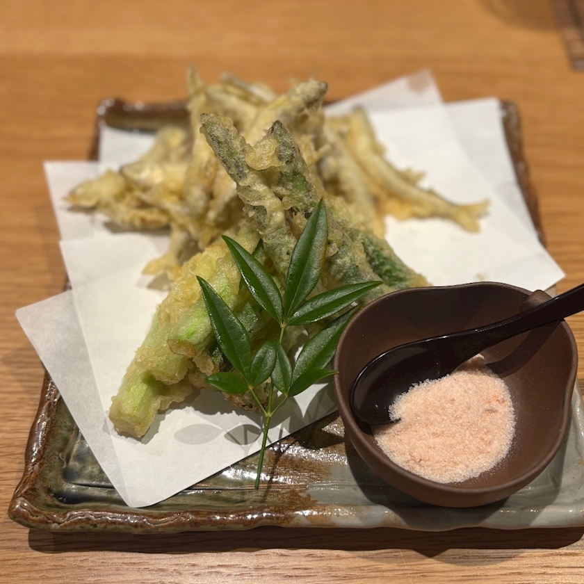 これはねー、アスパラと わかさぎの天ぷら❤️