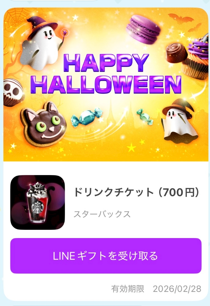 ハッピーハロウィンにスタバチケット頂いた〜🥺✨