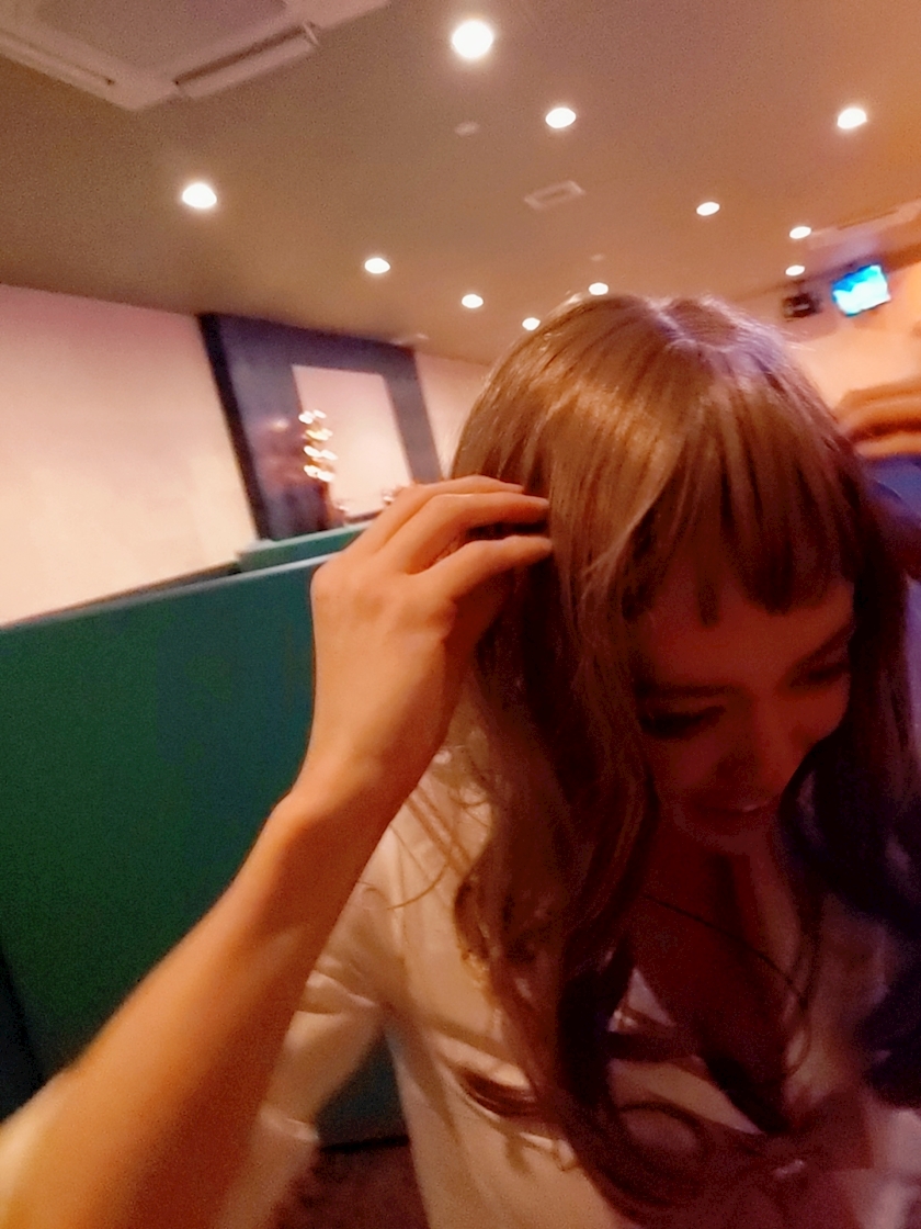 ヘアスタイル整え中の
