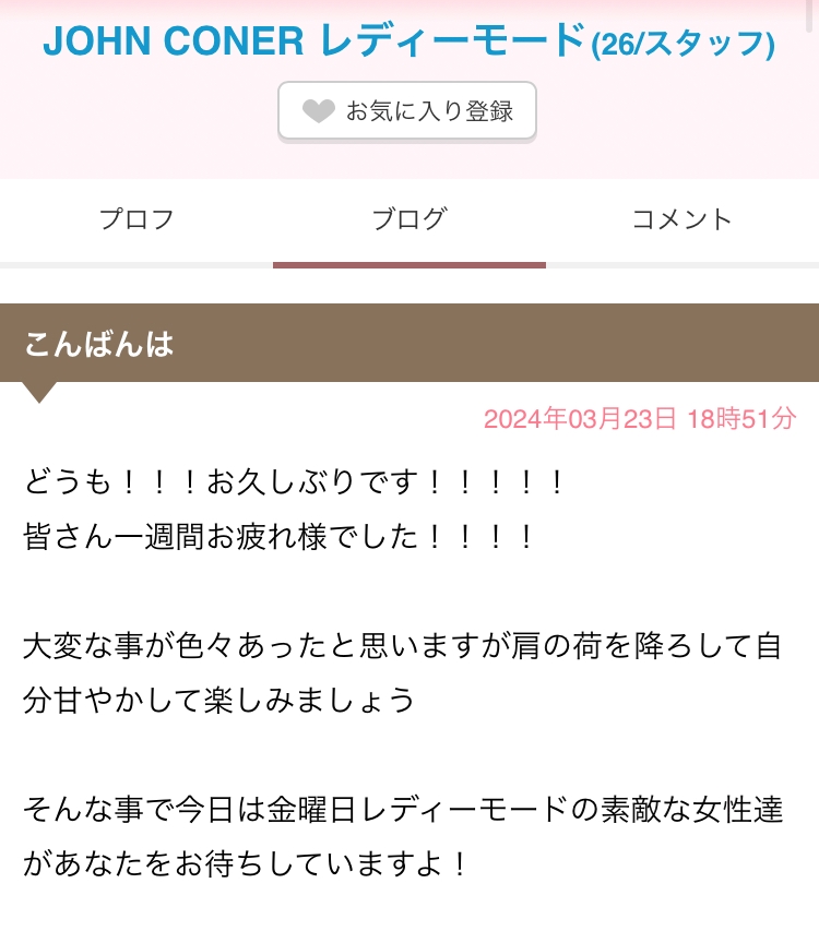名前:JOHN CONER レディーモード(ジョンコナーレディーモード) [28才/スタッフ]