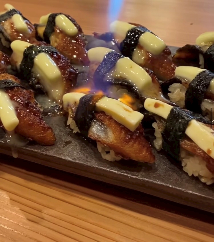 鰻の上にバターを乗せて