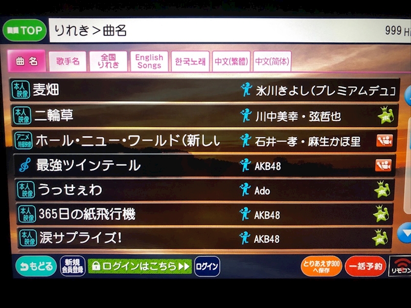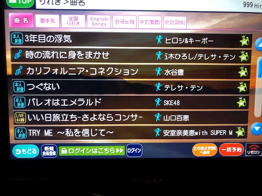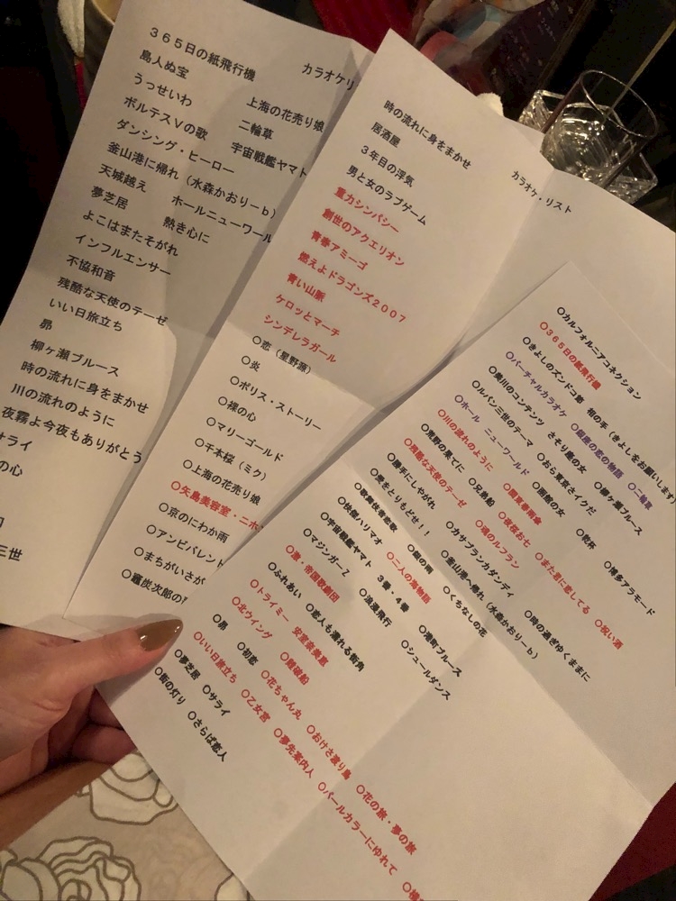 昨日のカラオケリストが