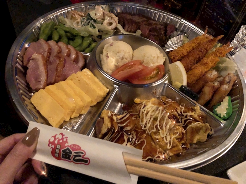 仲良くオードブルをつついて