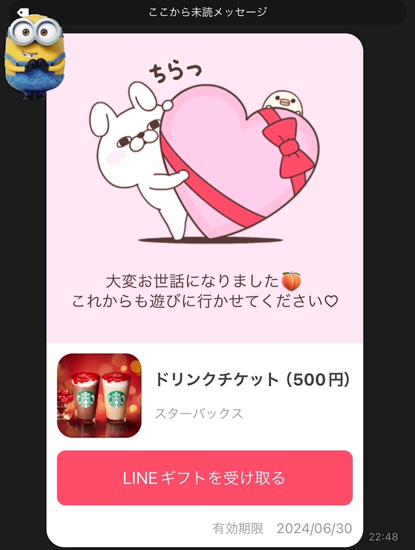 LINEギフトが届いてて