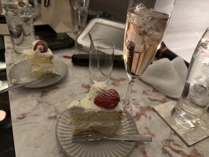 お祝いシャンパンのプレゼントもあって