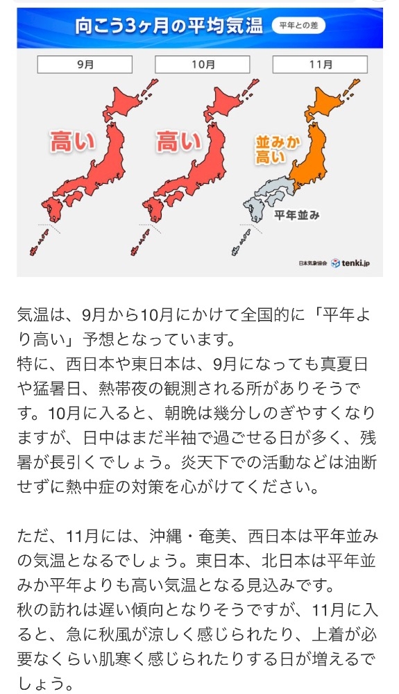 11月位まで暑い年になるらしく